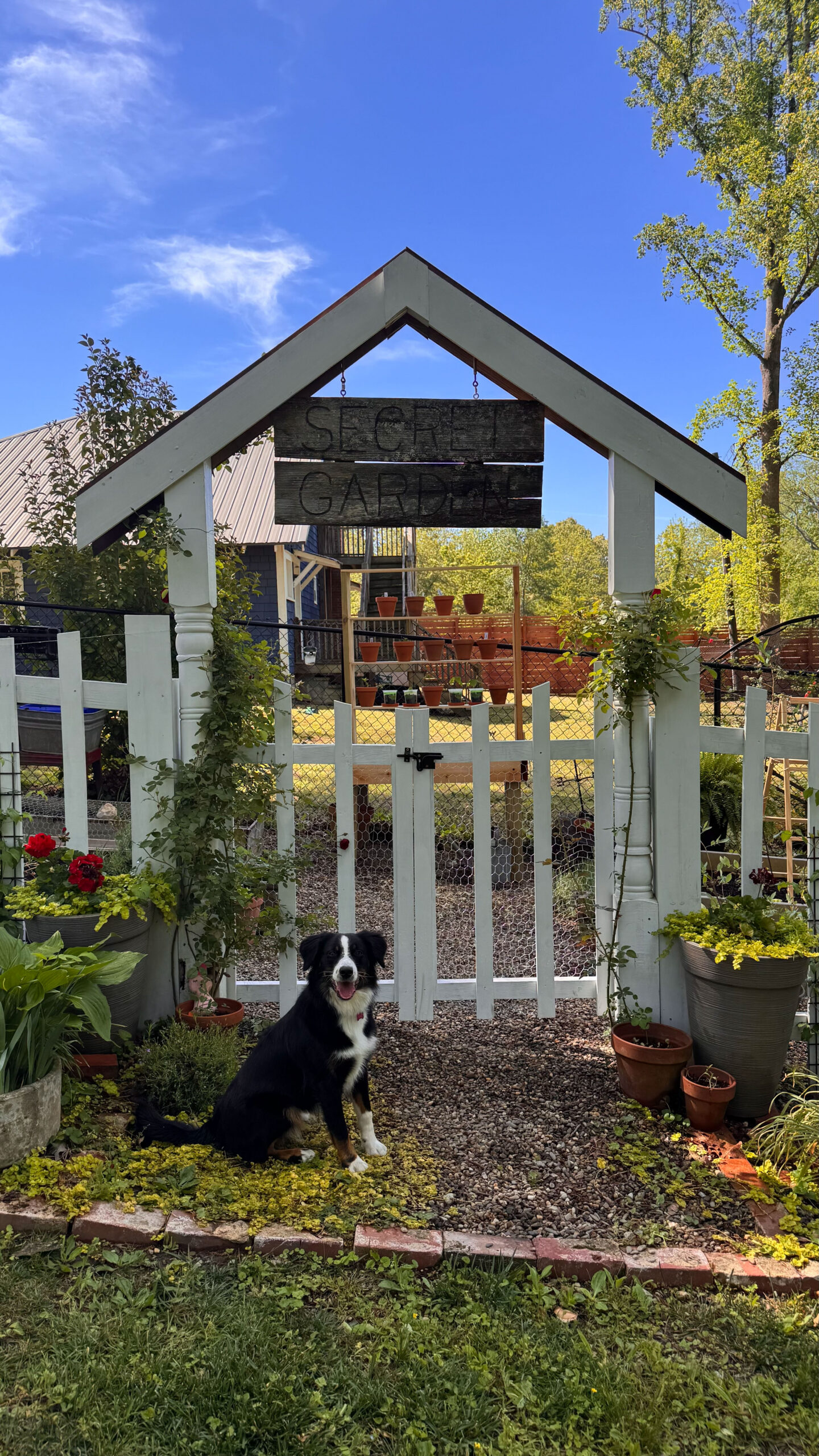 To wrap up this easy DIY project, I added a 1×4 board along the front of each side. This was simply for looks. I then stained those along with the side pallet panels dark brown to match the privacy fence. For a little extra touch, I added a board and a decorative piece to the top of the gabled roof.
