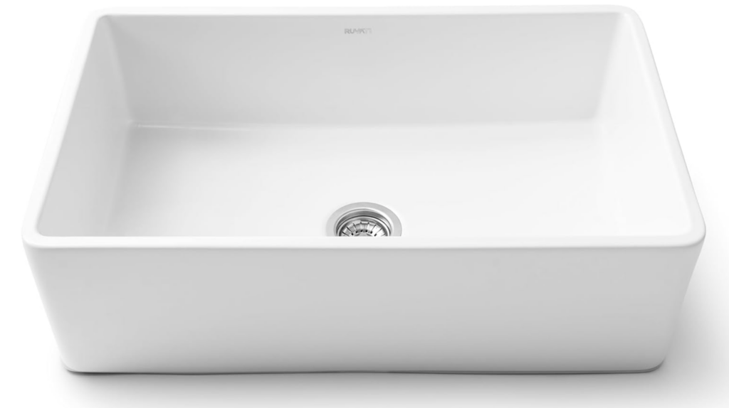 I checked my order history and have personally ordered this sink three times and have recommended it to clients countless times. It’s a beautiful white fireclay and reversible, with a ribbed front on one side. It can be installed as undermount or flush mount, so it’s versatile. It also comes in multiple sizes, has a single or double bowl option, and a curved front so there are a variety of choices. Overall, this is my top recommendation.