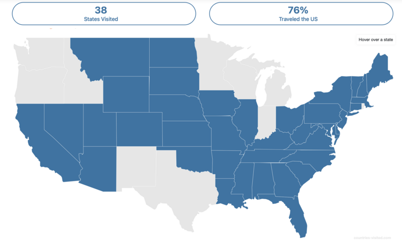 I’m currently at 38 states and counting. The U.S. is so diverse that traveling across it often feels like visiting entirely different countries—each state has its own landscapes, history, and character. Some I’ve passed through quickly, others I’ve explored in depth, but every stop adds a new layer to the map. My goal is to experience all 50, whether it’s a weekend visit, a road trip detour, or a longer stay to really dig in.